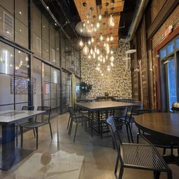 came on a busy friday night, lots of indoor seating (i think most people opt to sit outdoors) but overall a great vibe. I'm not a fan of beer but I got this strawberry margarita seltzer which was pretty good! I got it with salt, and I think it might've been better with tajin. however, the pizza/flatbread was not spicy at all there was more of pineapple than anything else--their jalapeño was also not spicy. Texture of the pizza wasn't too bad though just too much pineapple. Would come back!